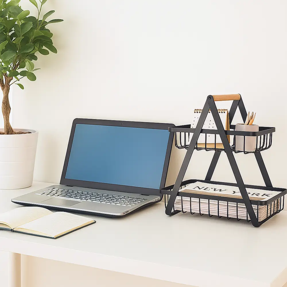 A Fruteira VivaBem é a escolha ideal para quem busca organização e estilo. Feita em ferro resistente com tecnologia antiferrugem, ela oferece 2 ou 3 andares para otimizar o espaço, mantendo frutas e objetos sempre ao alcance. Com alça de madeira e design moderno, ela combina perfeitamente com qualquer ambiente, desde a cozinha até o escritório.