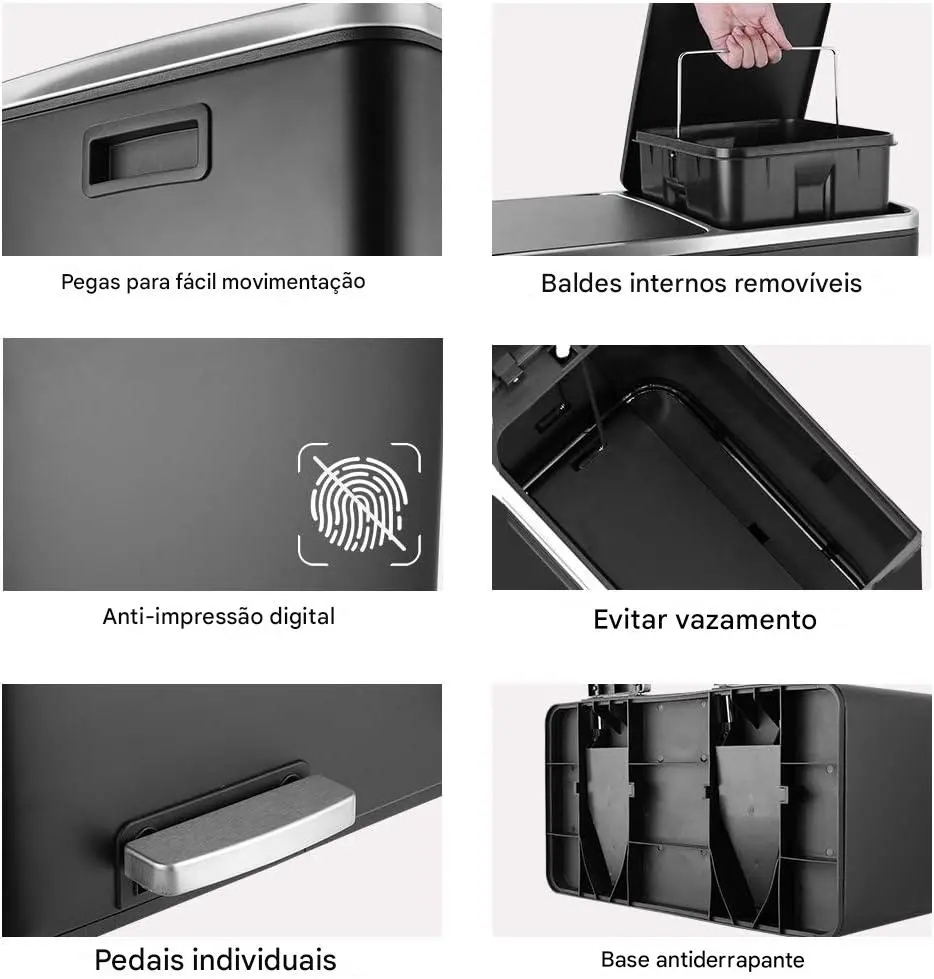 Baldes removíveis: facilita limpeza e troca de sacos sem esforço.